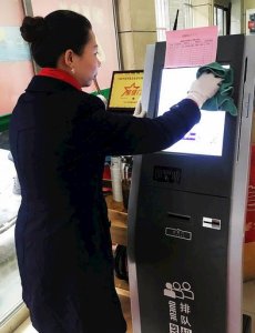 甘肅:郵儲(chǔ)青年志愿者為公共自行車消毒