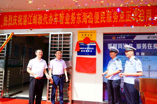 8月24日,廣東湛江郵政代辦車管業(yè)務(wù)東海島服務(wù)點揭牌,該服務(wù)點可以辦理補換領(lǐng)機(jī)動車號牌、行駛證、駕駛證等業(yè)務(wù),車主或駕駛?cè)酥恍枥U納郵政快遞費和車管牌證工本費,便可享受到“送證到家”服務(wù)。