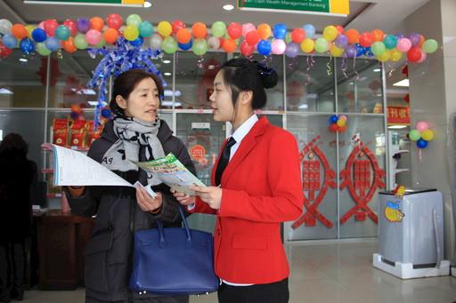 新年前夕,吉林郵政通過(guò)營(yíng)造網(wǎng)點(diǎn)節(jié)日氣氛、開(kāi)展主題活動(dòng)、加大宣傳力度等方式,積極向客戶開(kāi)展業(yè)務(wù)推介,為新年“開(kāi)門(mén)紅”奠定基礎(chǔ)。圖為在吉林郵政“百?gòu)?qiáng)網(wǎng)點(diǎn)”榆樹(shù)市中心街營(yíng)業(yè)所,身穿紅色外套的員工在開(kāi)展服務(wù)的同時(shí),也為客戶送上新年的祝福。  □記者  王謐  通訊員  趙曉東  攝影報(bào)道