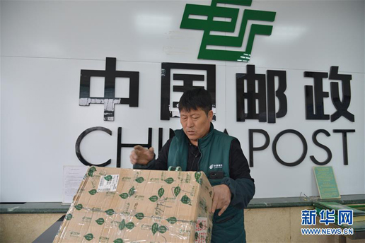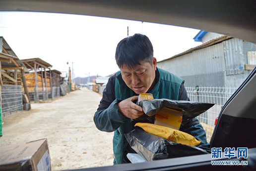 在琿春市春化鎮(zhèn),金仁哲在打包郵件。