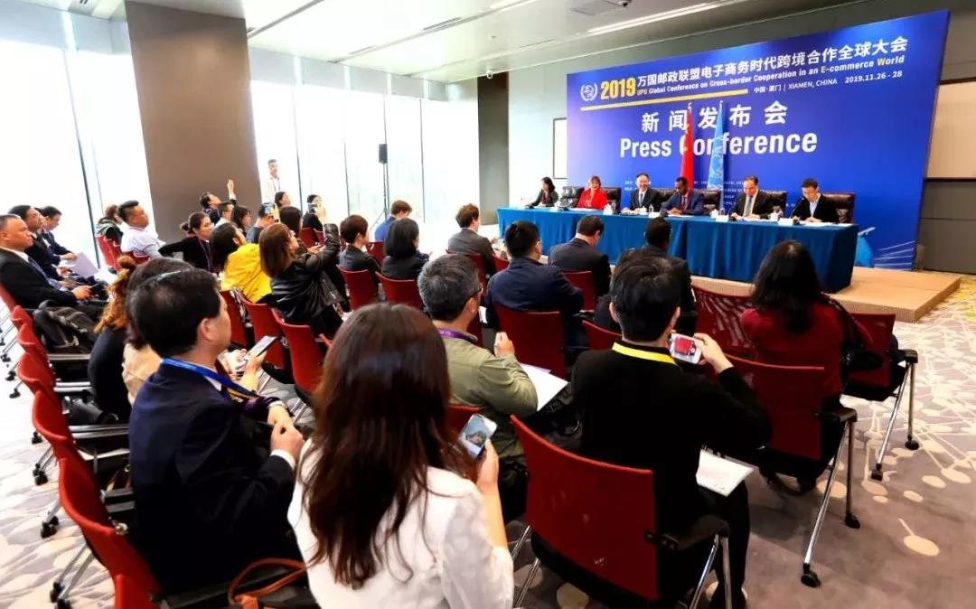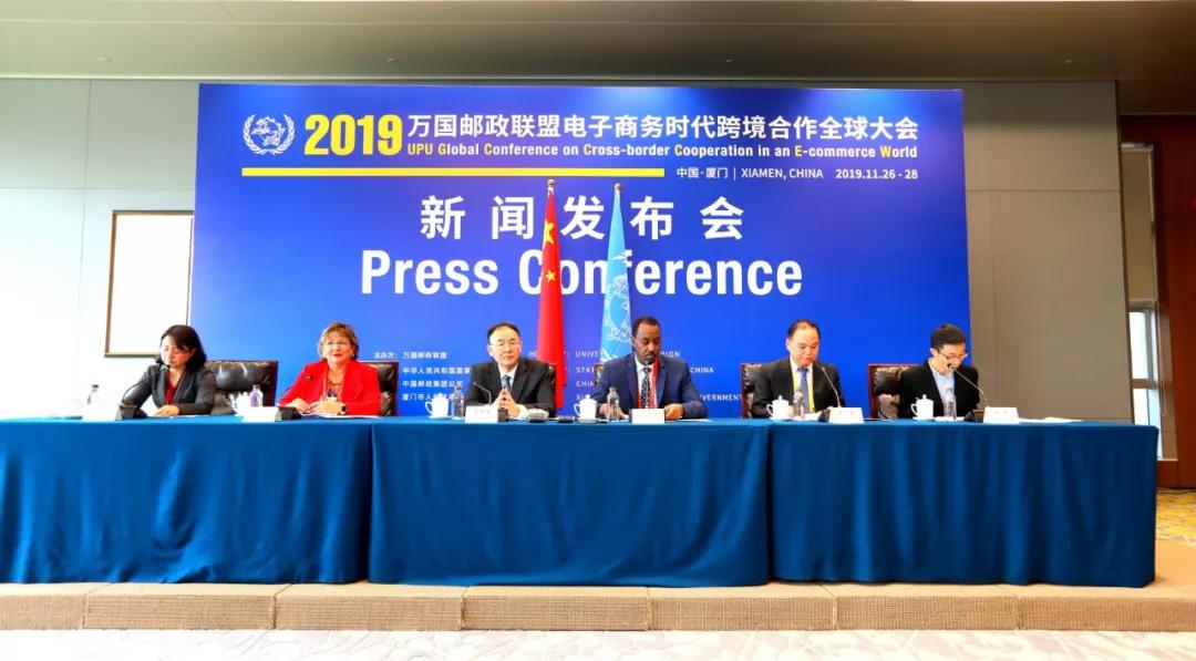 11月26日,萬(wàn)國(guó)郵聯(lián)國(guó)際局總局長(zhǎng)比沙爾·侯賽因、世界海關(guān)組織守法便利司司長(zhǎng)安娜·伊諾霍薩、中國(guó)國(guó)家郵政局局長(zhǎng)馬軍勝、中國(guó)郵政集團(tuán)公司副總經(jīng)理張榮林出席萬(wàn)國(guó)郵聯(lián)電子商務(wù)時(shí)代跨境合作全球大會(huì)新聞發(fā)布會(huì),圍繞增進(jìn)全球郵政、海關(guān)、鐵路、航空和跨境管理機(jī)構(gòu)之間的合作,發(fā)展完善全球郵政網(wǎng)絡(luò),促進(jìn)郵政供應(yīng)鏈的安全和便利化,推進(jìn)國(guó)際鐵路運(yùn)郵,推動(dòng)跨境電商和全球貿(mào)易可持續(xù)發(fā)展等主題向記者進(jìn)行了介紹并回答記者提問(wèn)。