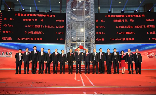 今日,中國郵政儲蓄銀行又迎來改革發(fā)展史上一個重要的里程碑,中國郵政儲蓄銀行A股股票(證券簡稱“郵儲銀行”,證券代碼“601658”)正式在上海證券交易所上市,標志著國有大型商業(yè)銀行“A+H”兩地上市完成收官。據(jù)悉,郵儲銀行此次A股發(fā)行價格為5.50元/股,“綠鞋”前募資金額為284.5億元,“綠鞋”后預計為327.1億元。