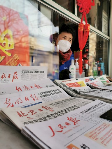 9:30,一位老大姐過來買《北京日報》和《參考消息》,還有人來打聽晚報和疫情情況;9:40,一個快遞小哥兒習慣地把車停在報刊亭旁邊,掃碼4塊錢買了《北京日報》《參考消息》《環(huán)球時報》,直說好幾天沒看報了。從除夕到初七,這個報刊亭銷售報刊1599元,《人民日報》《北京日報》《參考消息》《北京晚報》累計銷售近500份。