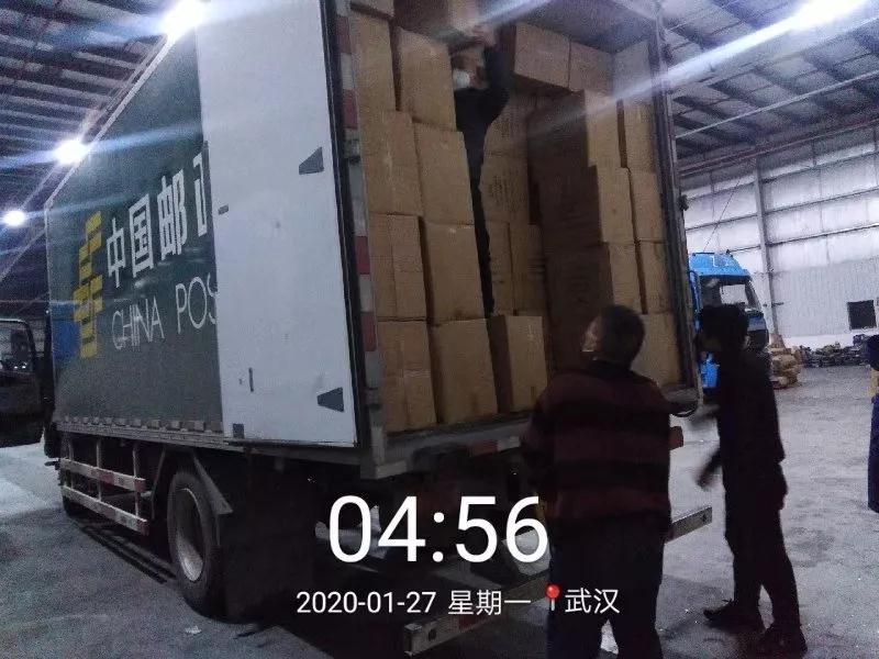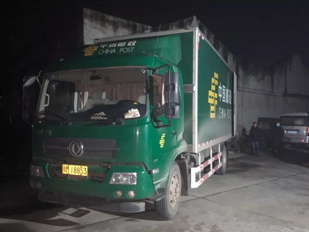 23時(shí)30分,2萬(wàn)件防護(hù)服共計(jì)400箱物資在彭場(chǎng)工業(yè)園開(kāi)始裝車(chē)。在2個(gè)多小時(shí)的裝車(chē)工作后,27日凌晨2時(shí),滿(mǎn)滿(mǎn)一車(chē)的防疫物資由駕押?jiǎn)T廖棟駕駛郵車(chē)送往武漢。
