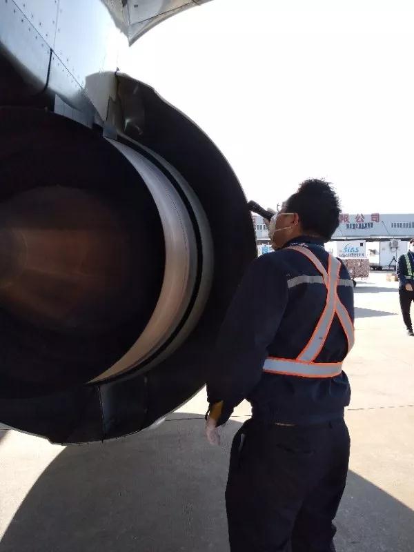 郵航武漢駐站機務(wù)對飛機進行過站檢查