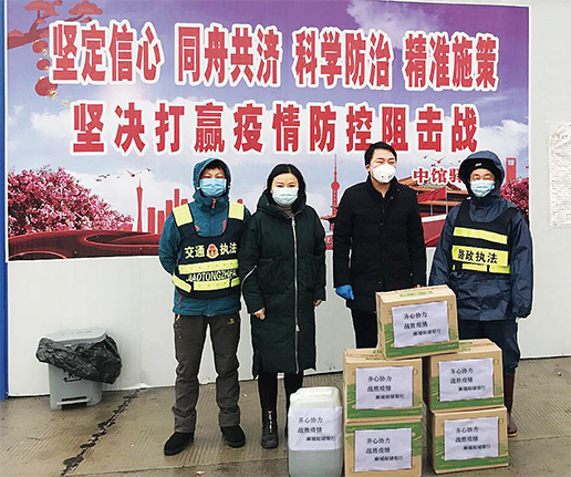 2月17日,麻城市支行黨總支書記、行長王繼東帶隊為當?shù)啬虾k事處牌樓社區(qū)疫情防控工作隊送去10袋大米、5壺油和500個口罩等抗疫物資,為掛點扶貧村疫情防控工作送去抗“疫”動力。