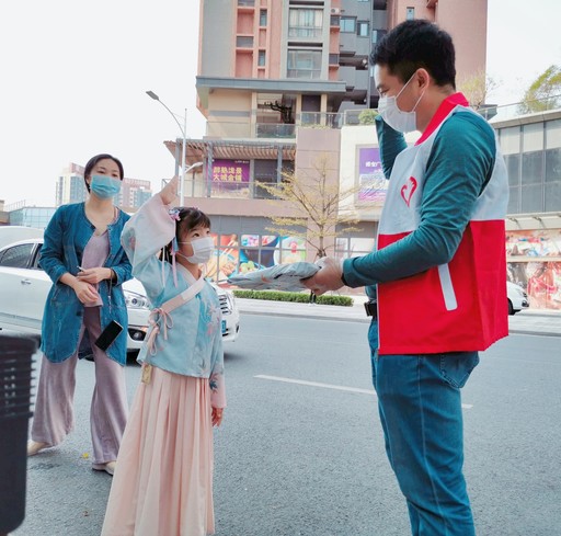 在禪城區(qū)瀧景花園門口,駱立先將郵件按樓棟號排好順序,以便迅速查找,然后逐一打電話通知客戶取件。三月的嶺南已是繁花似錦、春風拂面,不一會兒,他的頭上就滲出了細密的汗珠。收到教材,一位身穿漢服的小學生為表達感謝,向駱立敬了一個少先隊禮。駱立說這一舉動真是暖化了自己的心,再累也值得!