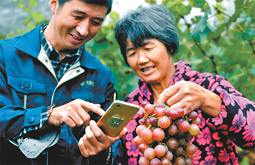 去年秋天,王溝鎮(zhèn)韓莊村葡萄種植戶張海洋家葡萄由于是晚熟品種,銷售情況不是太好,趙本增得知情況后,趕到張海洋的葡萄地,通過直播進(jìn)行宣傳,沒幾分鐘,就銷售了200多斤。這直播促銷可是趙本增新掌握的“利器”。
