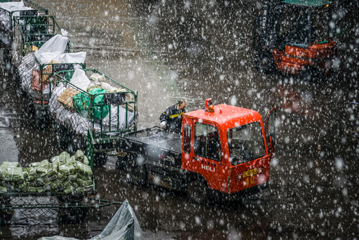 2月14日,北京市郵區(qū)中心局負(fù)責(zé)接發(fā)郵件的轉(zhuǎn)運分揀員正在風(fēng)雪中緊張地轉(zhuǎn)運處理封發(fā)郵件。為了讓捐贈物資快速送達武漢,北京中心局在分揀環(huán)節(jié)對防疫物資實施“三專”“五優(yōu)”工作機制,并開通兩個郵件接收垛口作為綠色通道,實行全程單獨處理。 □王笑波 攝