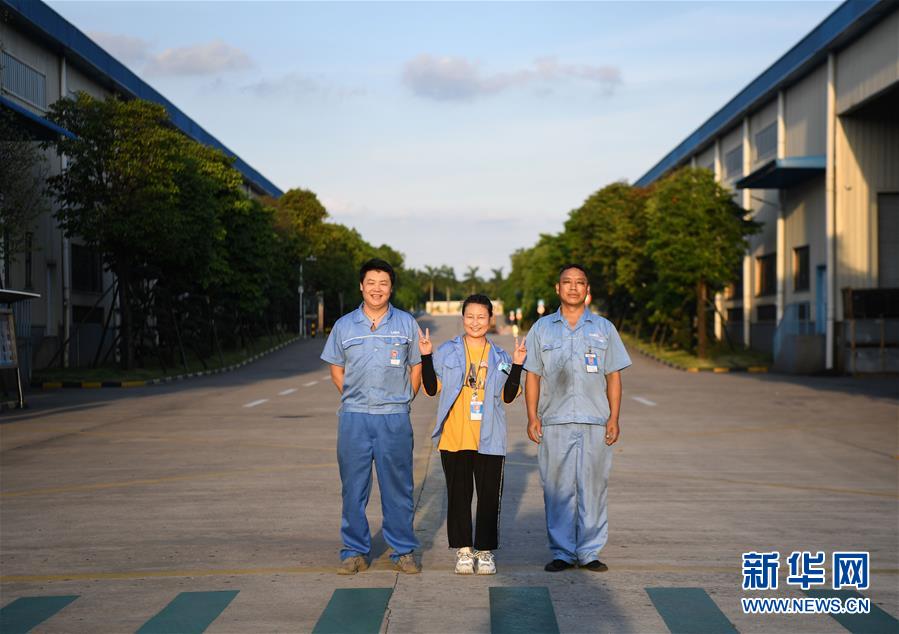 在佛山市三水區(qū)廣東星星制冷設(shè)備有限公司,來(lái)自四川涼山彝族自治州鹽源縣的貧困務(wù)工人員伍元國(guó)、易爭(zhēng)咪、董正軍(從左至右)下班后在廠區(qū)合影,他們通過(guò)東西部扶貧協(xié)作在這里實(shí)現(xiàn)就業(yè)(6月22日攝)。 新華社記者 鄧華 攝