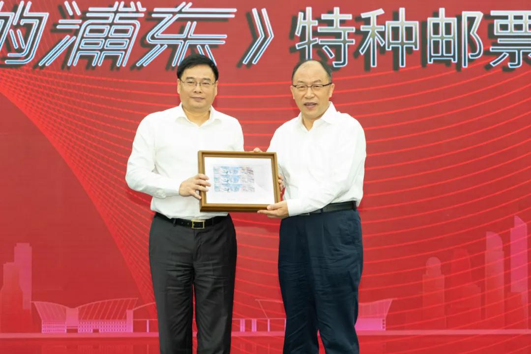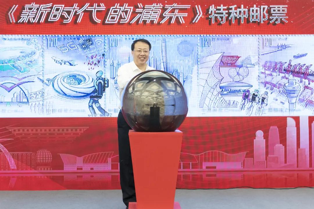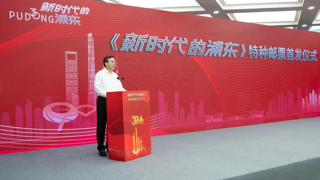 7月20日,《新時(shí)代的浦東》特種郵票首發(fā)儀式在上海舉行,方寸間展示浦東開發(fā)開放30年取得的輝煌發(fā)展成就。上海市委副書記、代市長龔正為特種郵票揭幕。國家郵政局黨組書記、局長馬軍勝,中國郵政集團(tuán)有限公司黨組書記、董事長劉愛力,上海市委常委、浦東新區(qū)區(qū)委書記翁祖亮分別致辭。上海市委常委、宣傳部部長周慧琳主持儀式。上海市副市長湯志平,國家郵政局黨組成員、副局長趙民,中國郵政集團(tuán)有限公司副總經(jīng)理康寧出席??祵幭驕酒劫?zèng)送編號(hào)為001號(hào)郵票。