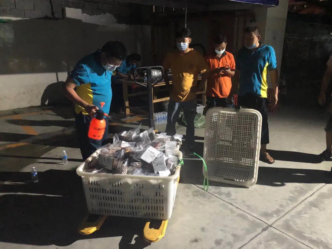 瑞麗市分公司珠寶項目部工作人員深夜對收到的郵件做消毒處理