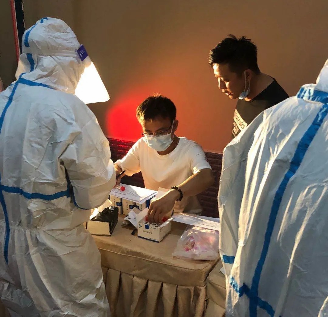 瑞麗市分公司協(xié)助醫(yī)護人員在對網格片區(qū)所有人員做核酸檢測