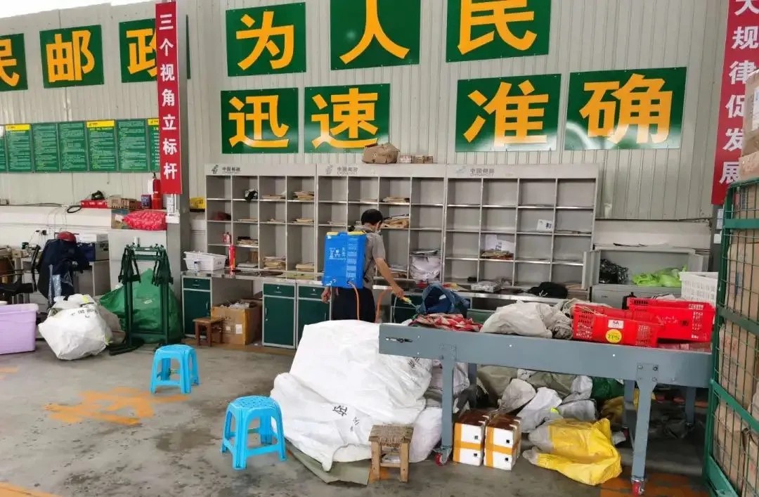 瑞麗市分公司郵件處理中心對郵件及生產區(qū)域進行消毒