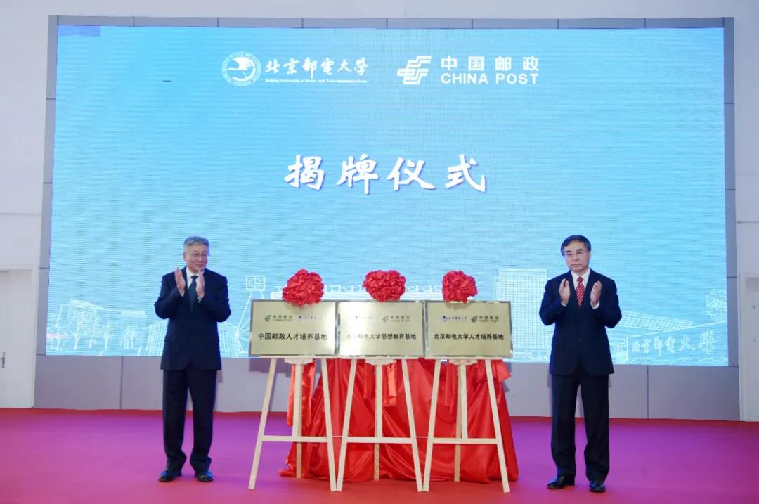 劉愛(ài)力、吳建偉共同為“中國(guó)郵政人才培養(yǎng)基地”“北京郵電大學(xué)人才培養(yǎng)基地”“北京郵電大學(xué)思想教育基地”揭牌