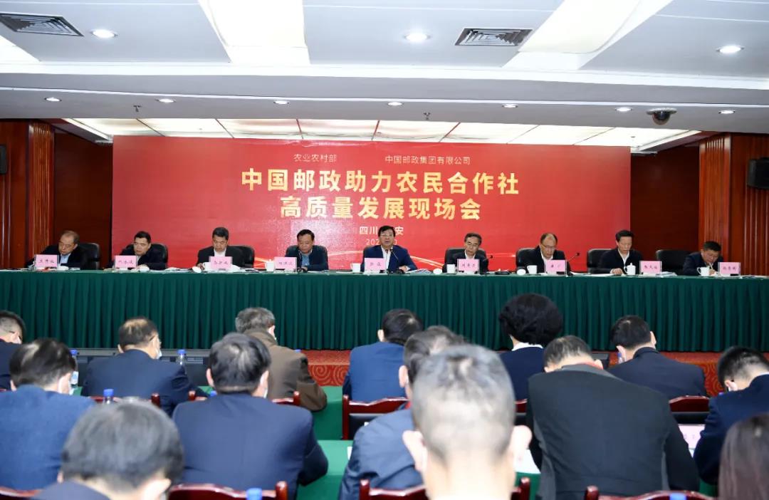 10月18日至19日,農(nóng)業(yè)農(nóng)村部和中國(guó)郵政集團(tuán)有限公司在四川雅安聯(lián)合舉辦“中國(guó)郵政助力農(nóng)民合作社高質(zhì)量發(fā)展交流活動(dòng)”。該活動(dòng)旨在進(jìn)一步總結(jié)政企聯(lián)合支持農(nóng)民合作社高質(zhì)量發(fā)展的主要做法,交流彼此優(yōu)秀經(jīng)驗(yàn),明確下階段重點(diǎn)工作。四川省人民政府副省長(zhǎng)、省委農(nóng)村工作領(lǐng)導(dǎo)小組副組長(zhǎng)楊洪波在活動(dòng)上致辭,中央農(nóng)村工作領(lǐng)導(dǎo)小組辦公室副主任、農(nóng)業(yè)農(nóng)村部黨組副書(shū)記、副部長(zhǎng)韓俊,中國(guó)郵政集團(tuán)有限公司黨組書(shū)記、董事長(zhǎng)劉愛(ài)力出席活動(dòng)并講話(huà)。中國(guó)郵政集團(tuán)有限公司副總經(jīng)理康寧,中國(guó)郵政集團(tuán)有限公司副總經(jīng)理、中國(guó)郵政儲(chǔ)蓄銀行股份有限公司行長(zhǎng)郭新雙出席活動(dòng)。