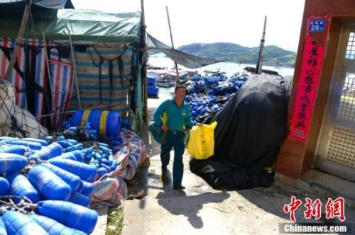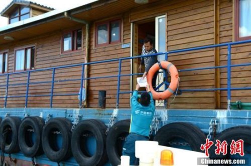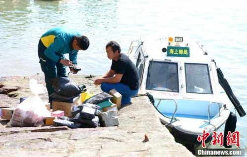 島上外來(lái)務(wù)工者到碼頭取包裹。
