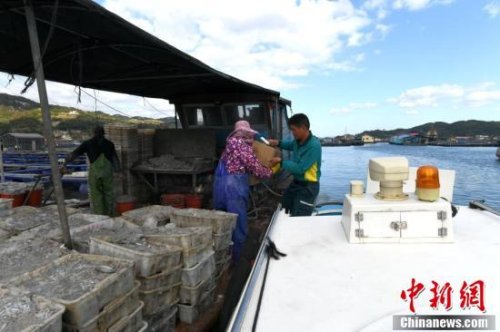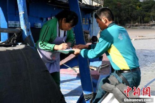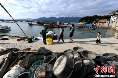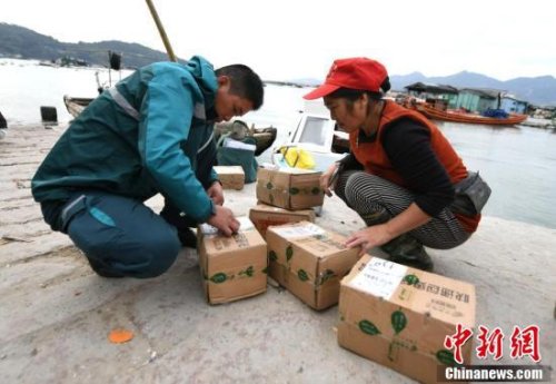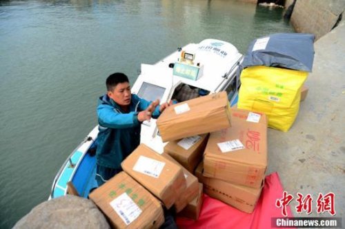 “雙十一”剛過(guò),福建省寧德市蕉城區(qū)海上郵遞員石進(jìn)全比往常更加忙碌。圖為村民到碼頭領(lǐng)取包裹。