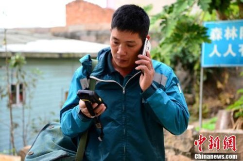 石進(jìn)全用手機(jī)聯(lián)系收件人取包裹。