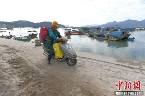 11月12日,石進(jìn)全開(kāi)著快艇穿梭在三都澳海上漁村?!半p十一”剛過(guò),福建省寧德市蕉城區(qū)海上郵遞員石進(jìn)全比往常更加忙碌。作為三都澳海域唯一的海上郵遞員,他要服務(wù)周邊上千戶漁排人家以及4座海島上8個(gè)行政村的信件和包裹。石進(jìn)全的父親曾搖著櫓為鄉(xiāng)親服務(wù)了23年,子承父業(yè)的他,也已經(jīng)在這條海上郵路走了20多年。