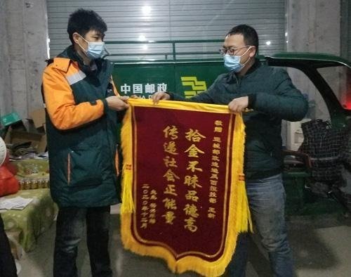 “您撿到包后及時歸還,我們非常感謝……”12月11日,拾金不昧的郵政快遞小哥王新,收到了失主李女士家人的當面致謝以及一面致謝錦旗。