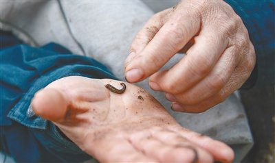 在給高峰村一戶人家送包裹時(shí),符蓮香被螞蟥咬了。