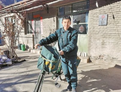 分揀之后,王懷敬出發(fā)了。每天,他要完成周邊4個大村15個投遞點、200多戶村民的郵件收發(fā)工作?!按謇锏穆凡缓米撸教幎际歉咂?,電動車怕走著走著就沒電了,還是自行車靠譜,騎不動了,就推著走?!?7年來,王懷敬送件,靠的是一輛自行車和兩個挎包。