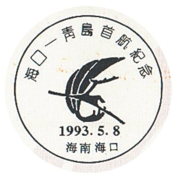 1993年5月8日,海南省航空公司開通了往返于??诤颓鄭u的直達(dá)航線,航程2500公里,每周六飛行一班。這條航線的開通對海南經(jīng)濟(jì)騰飛起到了積極的作用,進(jìn)一步促進(jìn)了兩市之間的政治、經(jīng)濟(jì)和文化的交流。海口市郵票公司聯(lián)合海南省航空公司發(fā)行了首航紀(jì)念封。
