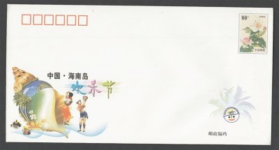 海南省集郵業(yè)務(wù)局發(fā)行了“陽光海南 度假天堂”紀(jì)念封一枚,并刻制了紀(jì)念郵戳,該紀(jì)念封貼用“和諧”個性化郵票,附票主圖和紀(jì)念郵戳均采用了海南旅游徽志。