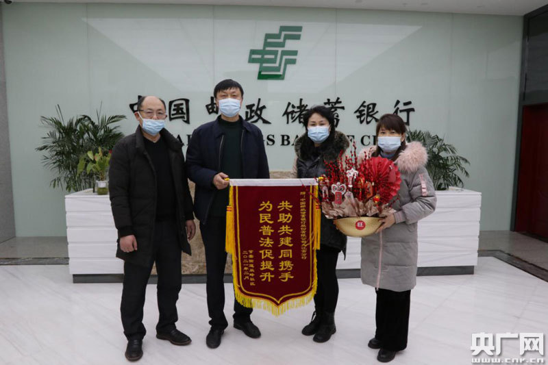 2021年2月,九江市甘棠街道雙峰社區(qū)工作人員將一面寫著“共助共建同攜手 為民普法促提升”的錦旗送到了郵儲(chǔ)銀行九江市分行手中,對(duì)郵儲(chǔ)銀行九江市分行主動(dòng)、高效助推全市“一公里法治主題文化圈”創(chuàng)建工作,充分表達(dá)了感謝。