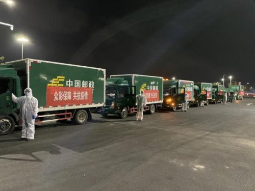 24日晚8點,12輛郵政大貨車先后完成裝貨工作,由12名身穿防護服的郵政駕駛員啟程前往江寧區(qū)祿口街道辦事處及下轄幾個社區(qū)。