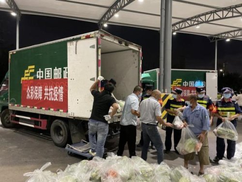7月25日凌晨2點,滿載著運輸物資的12輛郵政貨車開始陸續(xù)安全送達?!坝心銈儙兔D駁到下面各個社區(qū)的防疫站點,真的節(jié)省了我們很多時間?!?祿口街道相關負責人表示,原本這批物資是要求統(tǒng)一送到街道就行了,但是最近兩天人手不夠用,再加上要保障這批蔬菜瓜果到達居民手上的新鮮度,只能辛苦郵政駕駛員幫忙直接送到相應的社區(qū)點。