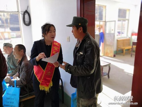 郵儲銀行工作人員下鄉(xiāng)給村民講解貸款政策。郵儲銀行河北省分行供圖