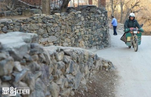 立冬了,山谷里的風(fēng)夾著料峭的寒意,涼意更重了。常年在山里做投遞工作的山村郵遞員董乃軍對此深有體會,山里的風(fēng)要比山外冷。圖為董乃軍騎著摩托車翻越去往葫蘆峪村的山脊。