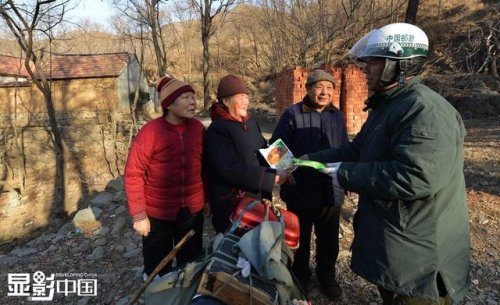 董乃軍(右)在大馬峪村投遞,他的摩托車一停,會吸引來許多村民。盡管作為一名農(nóng)村郵遞員待遇不高,但他已經(jīng)成為這條郵路上不變的風(fēng)景,山里的村民更是離不開他,他說:“我很熱愛自己的這份投遞工作,我舍不得山里的人們,我會一直沿著這條郵路走下去?!?/p>