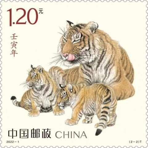 2022《壬寅年》生肖虎郵票一套兩枚,分別詮釋了“國(guó)”與“家”的概念。第一枚郵票名為“國(guó)運(yùn)昌隆”,描繪了一只氣宇軒昂的上山虎形象,矗立遠(yuǎn)眺、志存高遠(yuǎn),傳達(dá)出國(guó)家蒸蒸日上、雄心壯志的含義;第二枚郵票名為“虎蘊(yùn)吉祥”,描繪了面容溫婉的虎媽媽帶著兩只小虎的溫馨場(chǎng)景,寓意兒孫興旺、家庭美滿。2022《壬寅年》特種郵票是中國(guó)生肖郵票第四輪中的第七套,設(shè)計(jì)者為以畫(huà)虎聞名的我國(guó)著名畫(huà)家馮大中。