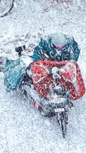 中國(guó)郵政集團(tuán)有限公司天大郵電支局郵遞員冒雪為訂戶(hù)送報(bào)紙。馮平攝(人民視覺(jué))