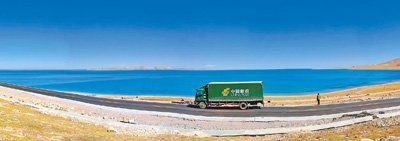 郵車(chē)從青藏高原色林錯(cuò)湖畔駛過(guò)。旦巴扎西攝(人民視覺(jué))