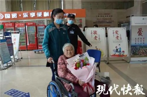 " 奶奶,我來接您了。"4 月 6 日上午 9 點,林曉芳將一大束鮮花送到老人手中,祝愿她早日康復(fù)。接著,他讓同行的丈夫在一旁照看老人,自己則在急診和住院部往返數(shù)次,幫老人辦理出院手續(xù)、拿藥、租輪椅。將老人扶上車,已是下午 1 點半,此時林曉芳才感覺自己又渴又餓,水都沒顧上喝一口。