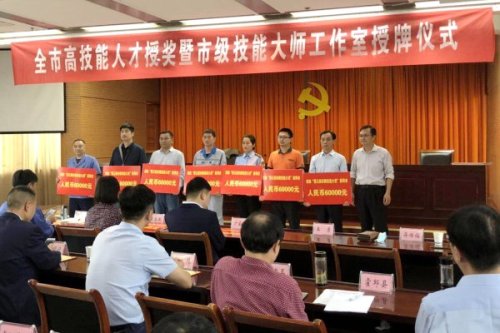 近日,六安市人社局舉行全市高技能人才授獎(jiǎng)暨市級(jí)技能大師工作室授牌儀式。盧海龍因獲得“第五屆安徽省技能大獎(jiǎng)”榮譽(yù)稱號(hào),上臺(tái)接受表彰。在獲得省人社廳5萬元獎(jiǎng)勵(lì)的基礎(chǔ)上,市人社局再獎(jiǎng)勵(lì)6萬元,累計(jì)獲得獎(jiǎng)勵(lì)11萬元。