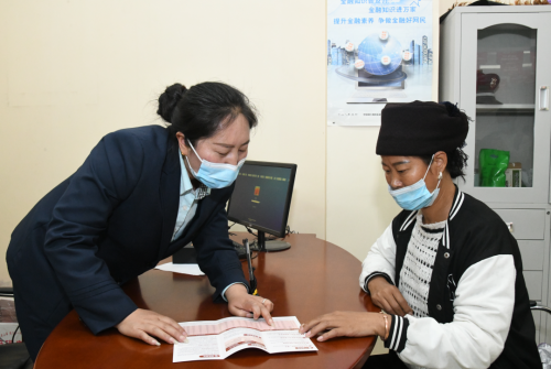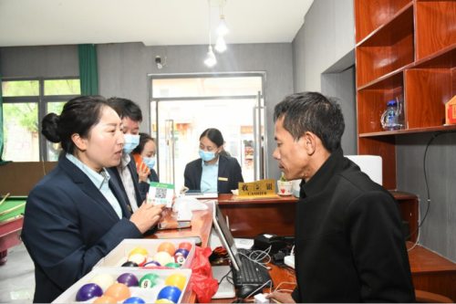 “當(dāng)然可以,我們郵政不僅有收款二維碼,還有基金、理財(cái)、保險(xiǎn)等業(yè)務(wù)……你還可以開通手機(jī)銀行,以后訂貨轉(zhuǎn)賬很方便,也不要手續(xù)費(fèi)哦?!绷硪贿?,土比妞牛的同事馬玉蘭、魯瑜熟練地為吉覺勒果辦理掃碼支付業(yè)務(wù)。