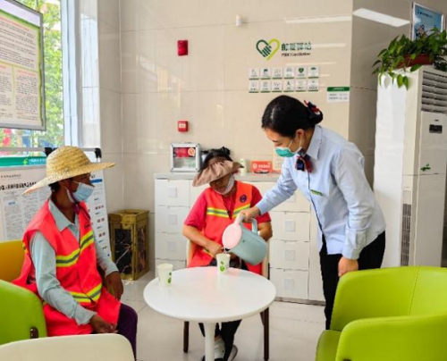 為切實履行社會責任,改善戶外勞動者喝水難、休息難等問題,今年以來,郵儲銀行連云港市分行積極響應(yīng)全國總工會《金融行業(yè)開放共享服務(wù)資源 攜手關(guān)愛戶外勞動者倡議書》號召,在總、省行統(tǒng)一部署下,依托轄內(nèi)營業(yè)網(wǎng)點扎實推進“郵愛驛站”建設(shè),為交通警察、環(huán)衛(wèi)工人、建筑工人、快遞員等戶外勞動者提供志愿服務(wù),讓“郵愛驛站”成為戶外勞動者休憩的好去處。