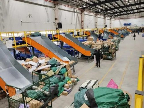隨著一輛輛卡車到站??吭诙饪谔?,來自各地的郵件通過傳送帶進入省際進口郵件處理中心,粗分、拆包、小件掃描、裝籠,工人們圍繞著各個分揀線開始緊張有序的郵件分揀作業(yè)。