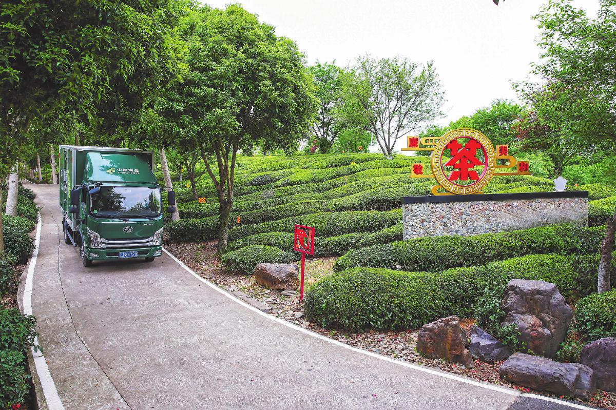 郵車(chē)駛?cè)搿班]樂(lè)農(nóng)品”黃山茶語(yǔ)基地。□徐雷 攝