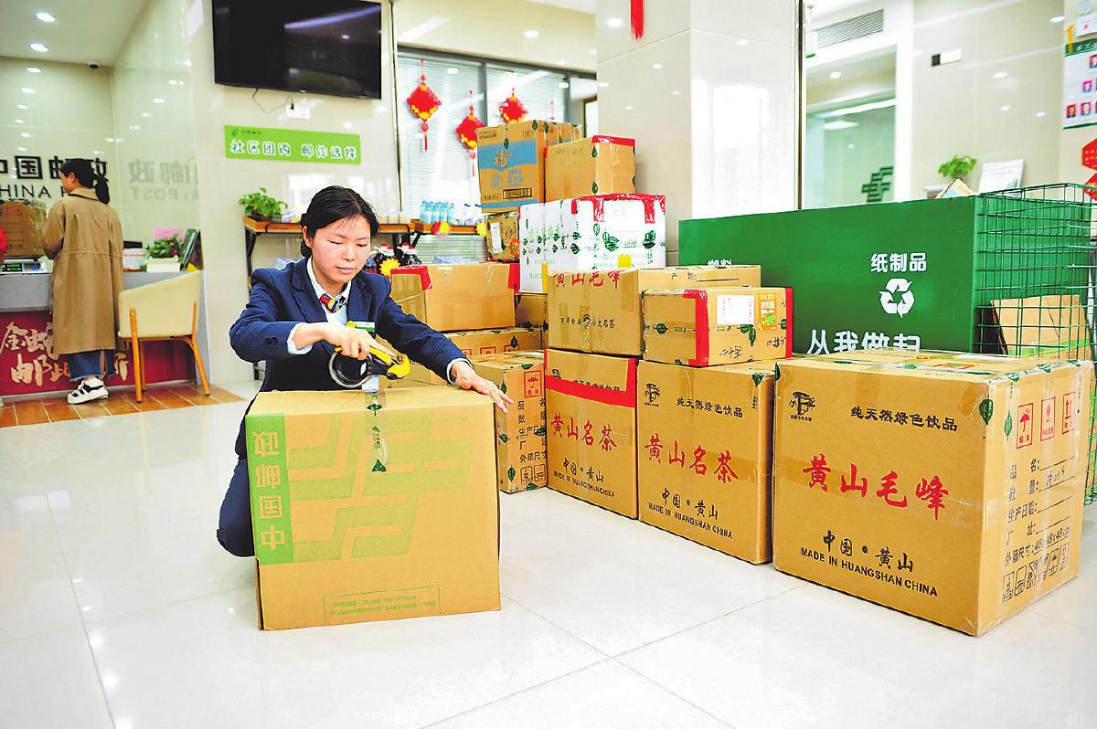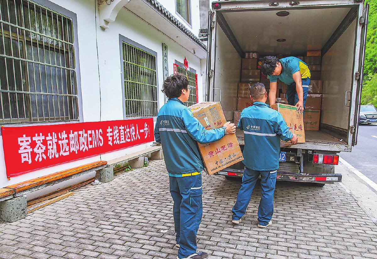 郵政員工深入制茶企業(yè),上門(mén)收寄徽茶郵件?!跣炖住z