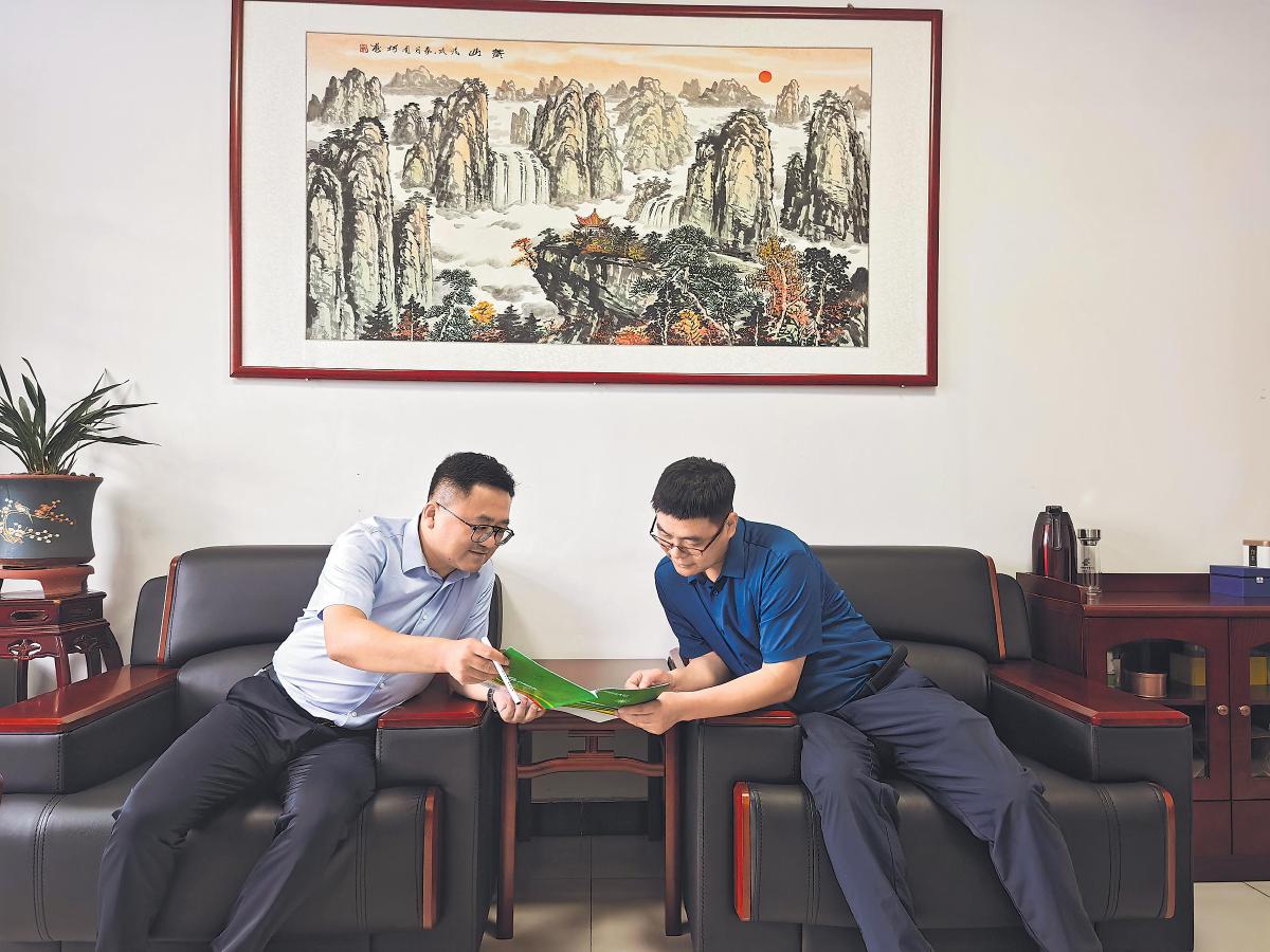 趙晨(左)走訪客戶,調(diào)研業(yè)務(wù)市場(chǎng)。