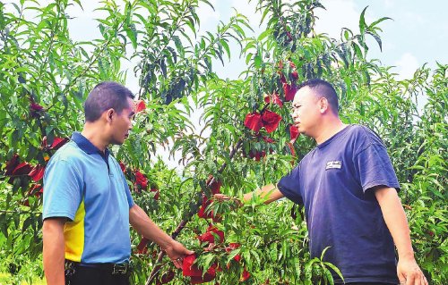 郵政工作人員走訪果農(nóng),了解銷售寄遞需求?! 蹂X躍輝 攝