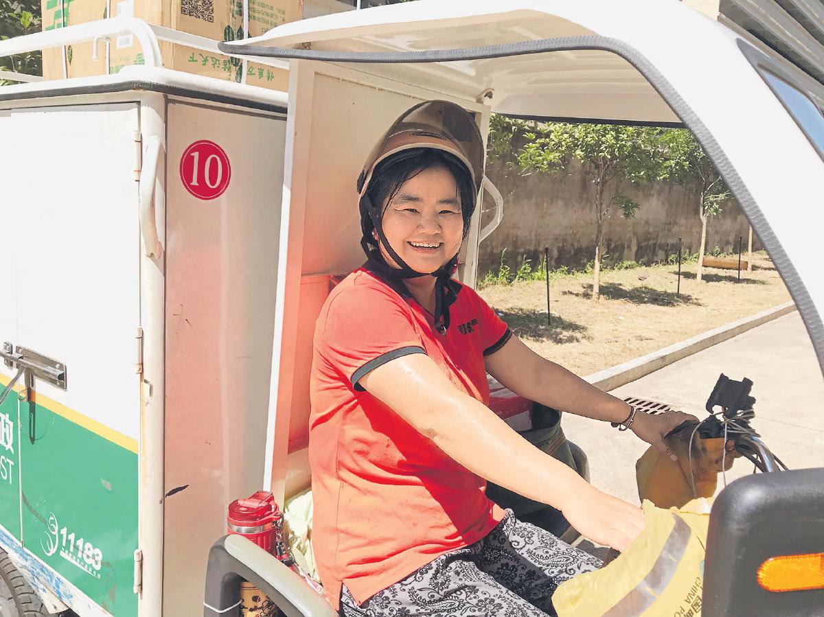 江西省泰和縣郵政分公司投遞員頂著烈日行進(jìn)在投遞路上。