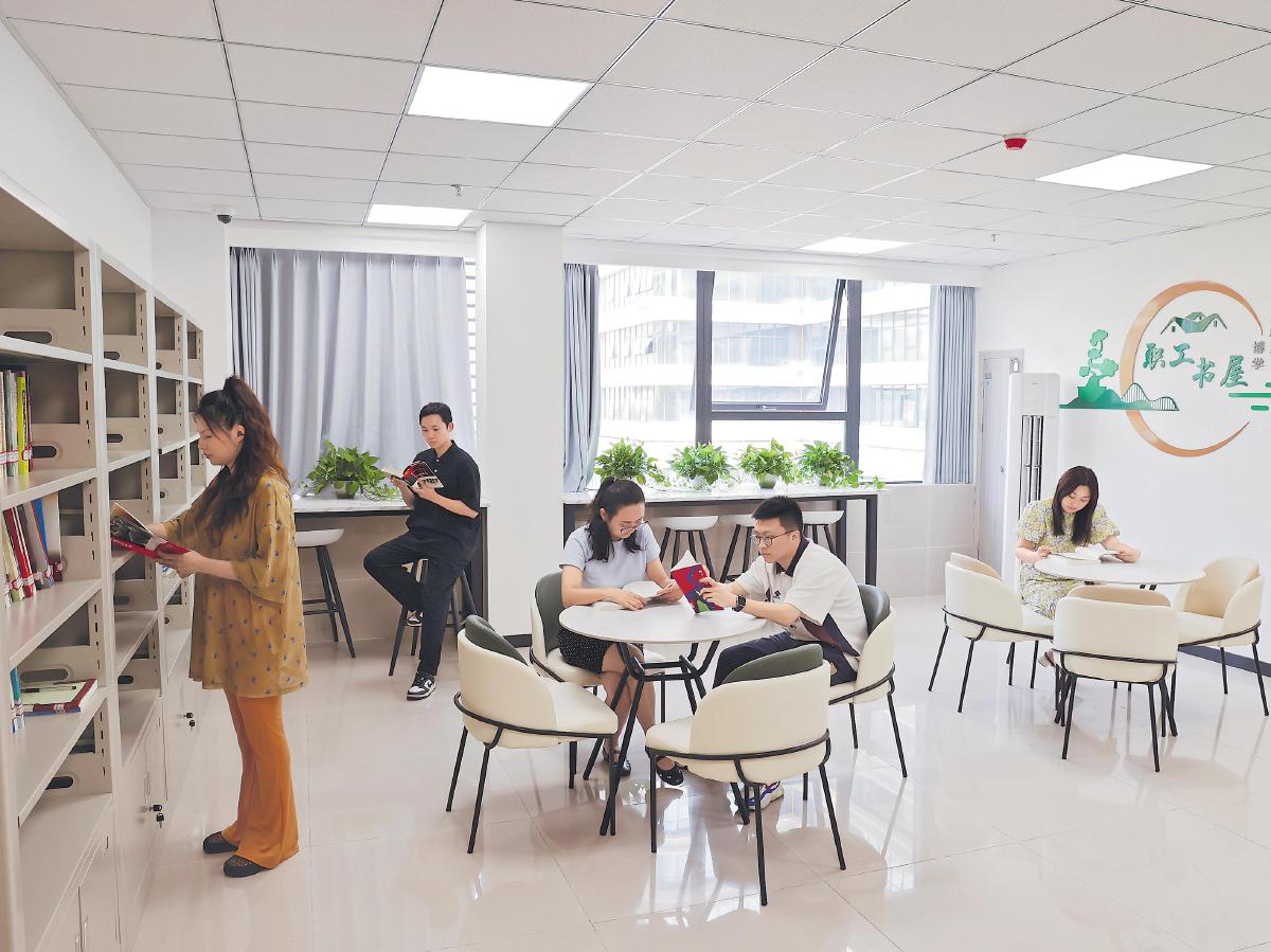 職工書(shū)屋分為陳列區(qū)、閱覽區(qū)和自習(xí)區(qū),圖書(shū)涵蓋黨建理論、文學(xué)藝術(shù)、專(zhuān)業(yè)技能、歷史哲學(xué)、生活百科等類(lèi)別,滿(mǎn)足了職工多樣化的閱讀需求。室內(nèi)還配備了桌椅、閱讀燈等,讓職工在工作之余通過(guò)閱讀放松身心、積攢能量。