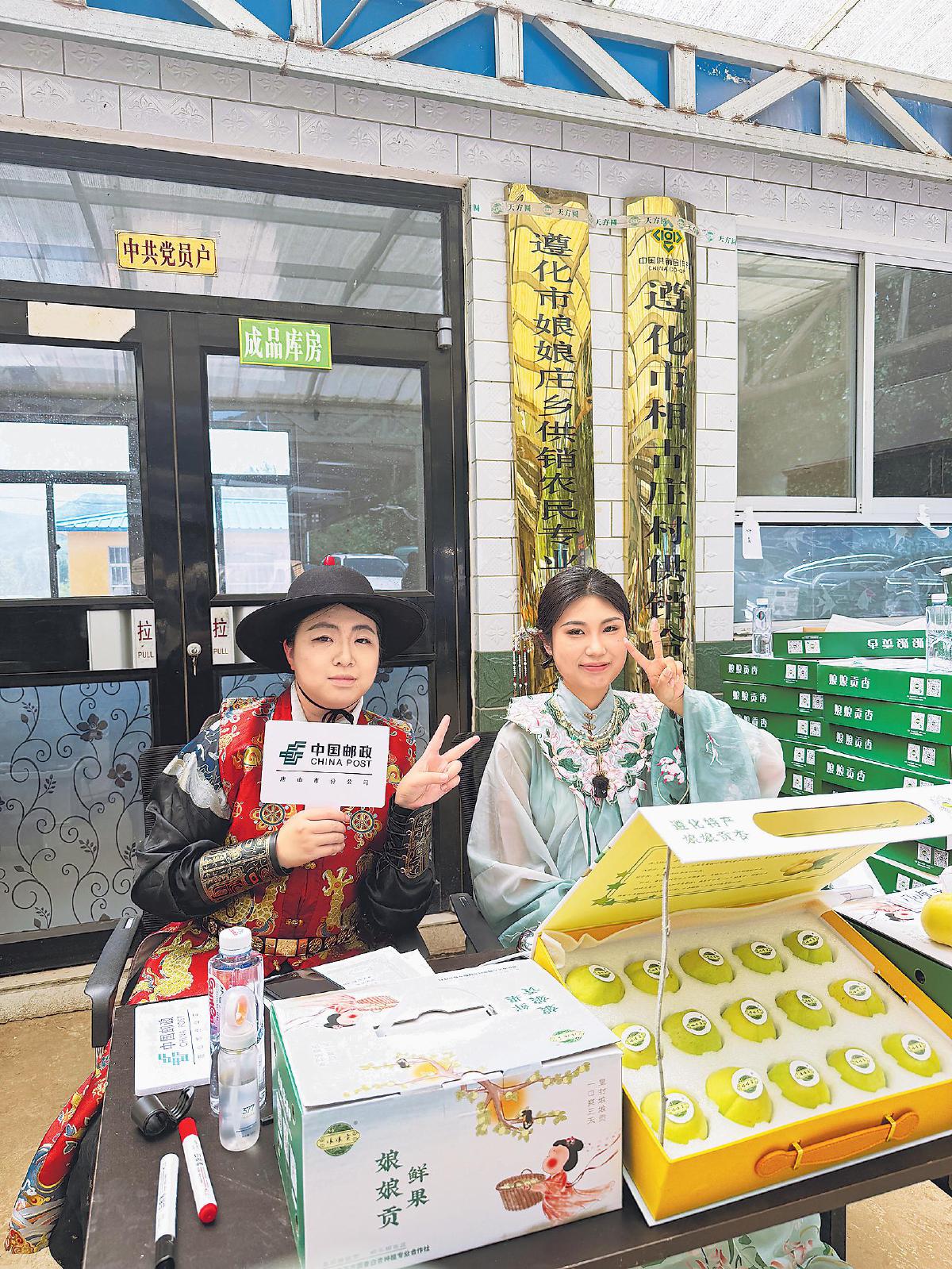 “《遵化州志》中曾記載:遵化東南二十五里,有村名相古莊,盛產(chǎn)銀白杏,因味道鮮美,被定為年貢。”“相傳在600年前的明朝,還有一段與香白杏有關(guān)的愛情故事?!敝辈ラg里,主播身著“娘娘裝”,對(duì)有關(guān)“娘娘貢”香白杏的歷史記載、文化典故侃侃而談,在她身邊坐著“皇上”和“小黃”。